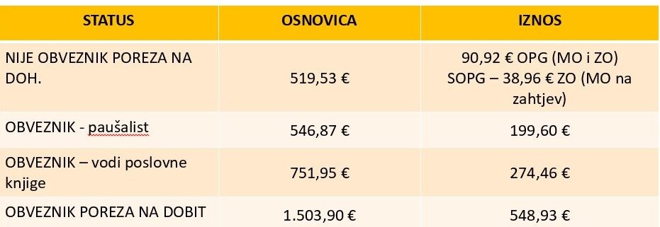 Osnovice za obračun doprinosa ovih poljoprivrednika iznosi 546,87 eura za 2023. godinu i plaćaju se doprinosi za mirovinsko osiguranje (I. i II. stup od 20%) te doprinos za zdravstveno osiguranje po stopi od 16,5%. Za to se ne predaje JOPPD!